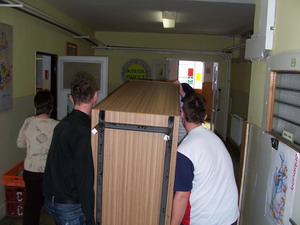 Žiaci z nižších ročníkov pomáhali prenášať stoly, stoličky, premiestňovať ťažké kusy zariadenia a nábytku. S technicky náročnejšími prácami si hravo poradili naši údržbári.