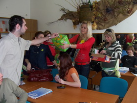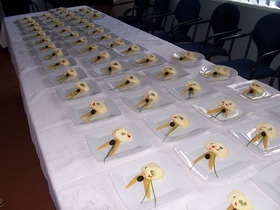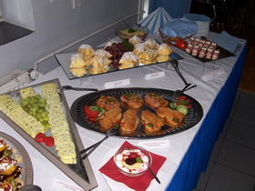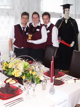 Jednou z častí praktických záverečných skúšok žiakov 3. ročníka odbor hostinský je príprava recepcie pre rodičov, ktorú zrealizovali žiaci 3. F 18. apríla 2008 v A klube.
